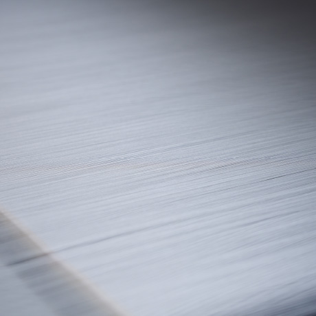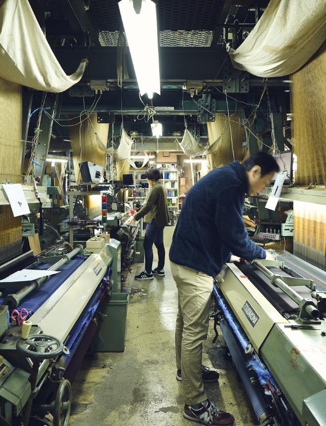 生地の柄製作から自社工場での製織までを手がけるクイックアンドレスポンスの一貫生産体制を強みとしてきました。