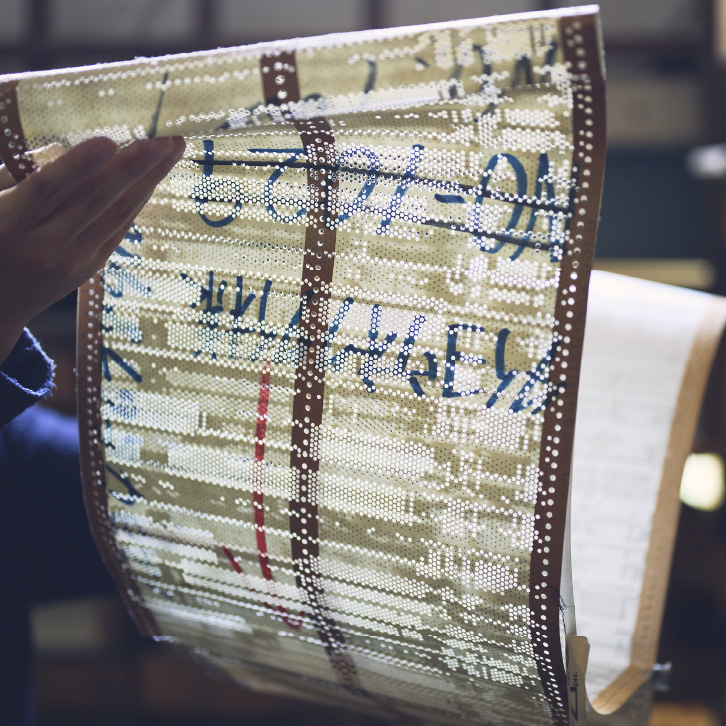 一万以上を保有する図案のライブラリは、先人の残したなにものにも代え難い財産。時代を越えて何度でも新しく生まれ変わり、そのパターンの豊かさは組み合わせや色合わせによって尽きることがありません。