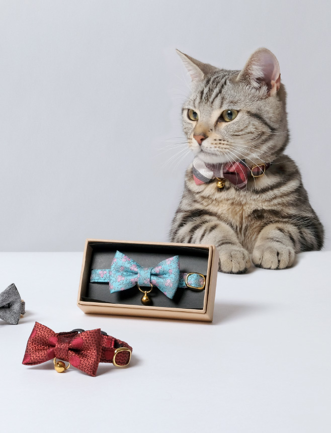 西陣織 シルク100%のハイクオリティをそのままに、猫ちゃん用アクセサリーとしてリプロダクト。